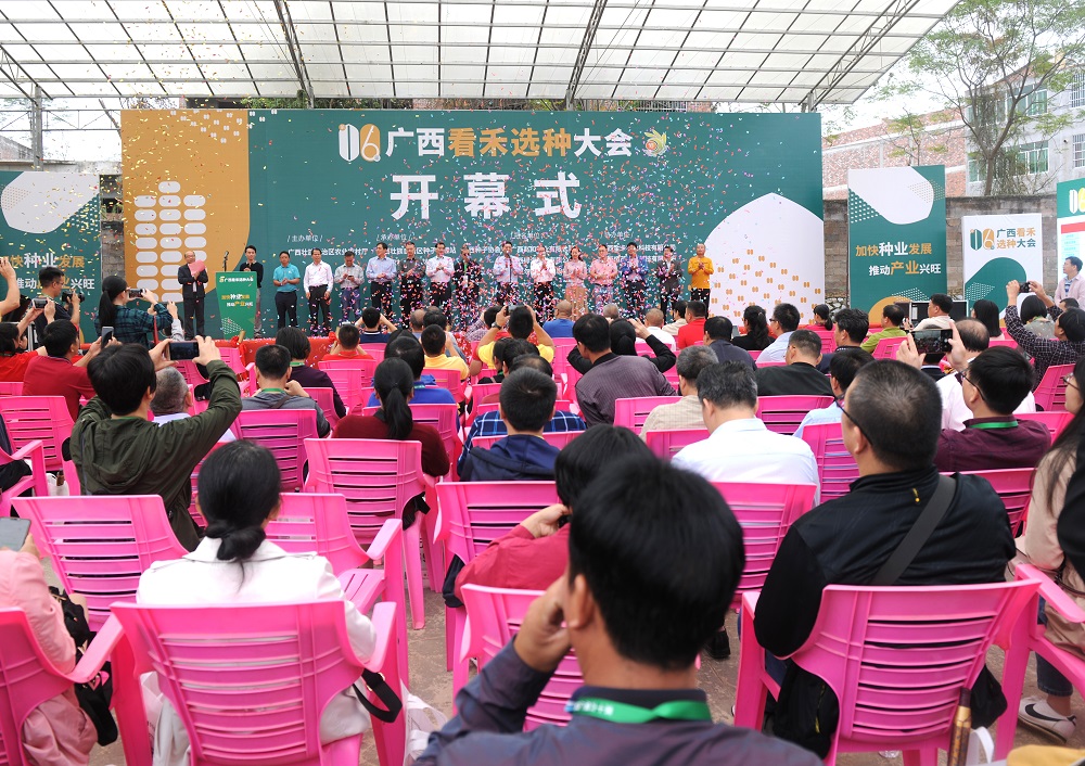10月25日,广西第十六届“看禾选种”大会开幕式在广西南宁隆重举行,超600个优质(zhì)水稻玉米品种在田间飘香,向近千名(míng)来自各地的专业观众亮出完美身姿。开幕式会场,汇集了品牌企业展览、重点推介品种授牌、优质(zhì)稻米品尝、优良品种田间展示等多(duō)项精(jīng)彩纷呈的活动。集团成员企业广西兆和种业有(yǒu)限公(gōng)司董事長(cháng)何懿带领营销团队20余人精(jīng)心组织推介公(gōng)司各品种,获得主办(bàn)单位高度赞扬。