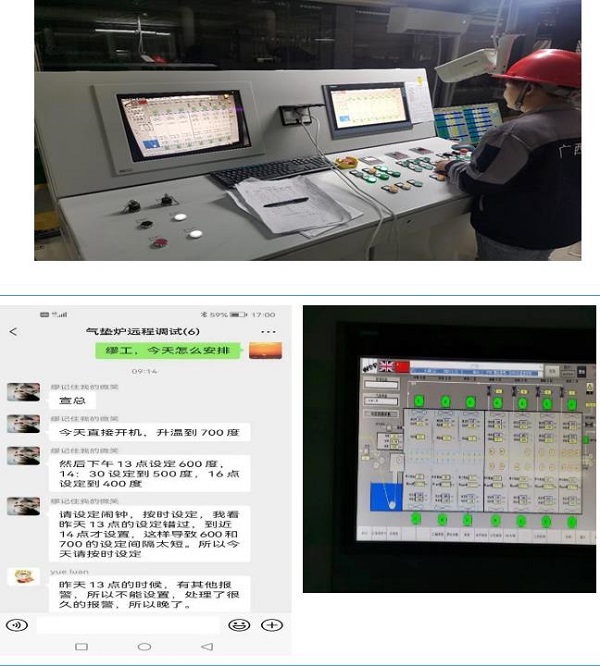 气垫炉设备的调试。气垫炉设备在副总经理(lǐ)宣夕文(wén)的整體(tǐ)协调指挥下,目前调试工(gōng)作(zuò)正在紧张有(yǒu)序地进行中(zhōng)。4月21日,炉區(qū)温度已达到正常生产(chǎn)的工(gōng)艺温度,预计本月底前将进行带料调试,炉區(qū)各参数优化工(gōng)作(zuò)将通过遠(yuǎn)程协助完成。