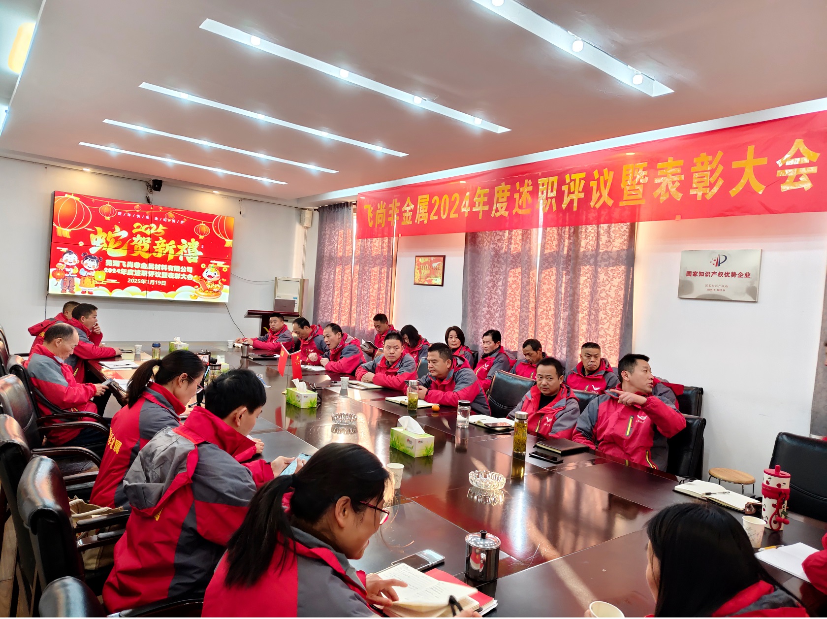2025年1月19日上午,飞尚材料公(gōng)司2024年度述职评议暨表彰大会在公(gōng)司三楼会议室隆重举行,公(gōng)司中(zhōng)层及以上干部、部分(fēn)管理(lǐ)人员、先进集體(tǐ)代表及优秀员工(gōng)参加了会议,共同回顾过去一年的工(gōng)作(zuò)成果与经验,展望未来发展的美好前景。